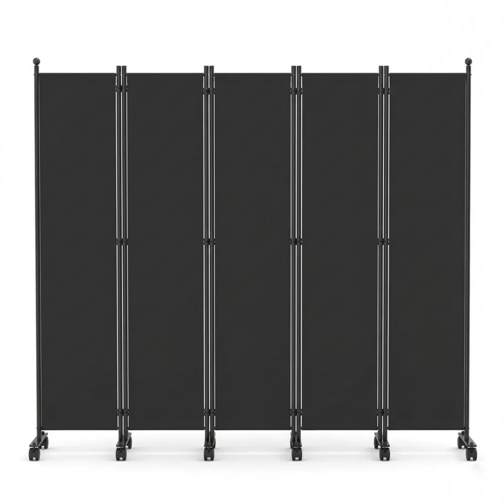 Faltbarer Raumteiler auf Rollen, 5-teilig, 284x181x30cm, Sichtschutz für Balkon